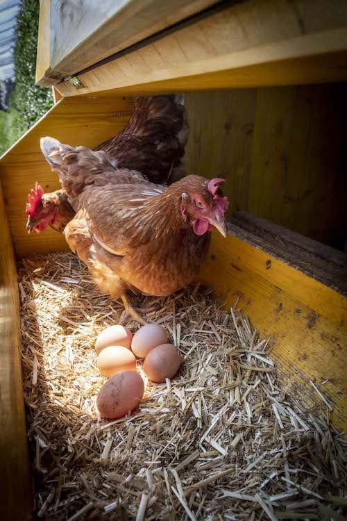 To help reduce cannibalism of eggs, provide plenty of nest space for the number of hens you have, and—again—feed a complete feed that provides all of their required nutrients.