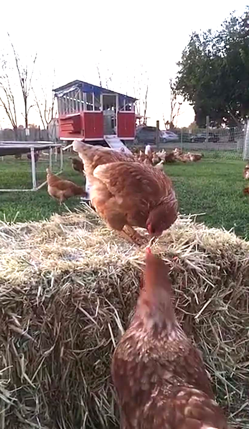 If you notice that your chickens are fighting too aggressively over who gets to play with the straw bale, try adding multiple straw bales and put them far away from each other.