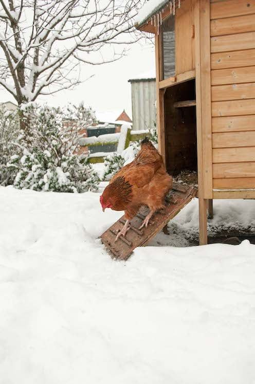 During snowy or wet weather, pay attention to your litter to ensure birds are not bringing too much moisture back into the house with them.