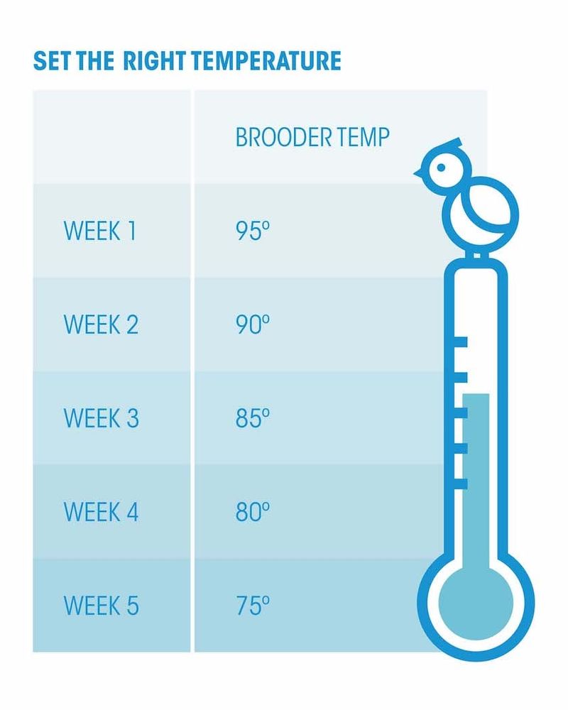 For the first few weeks of life, chicks are unable to regulate their own body temperature. Keeping the appropriate temperature for each week of the chick’s life will support them through this sensitive stage.