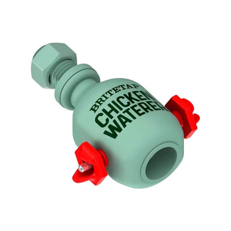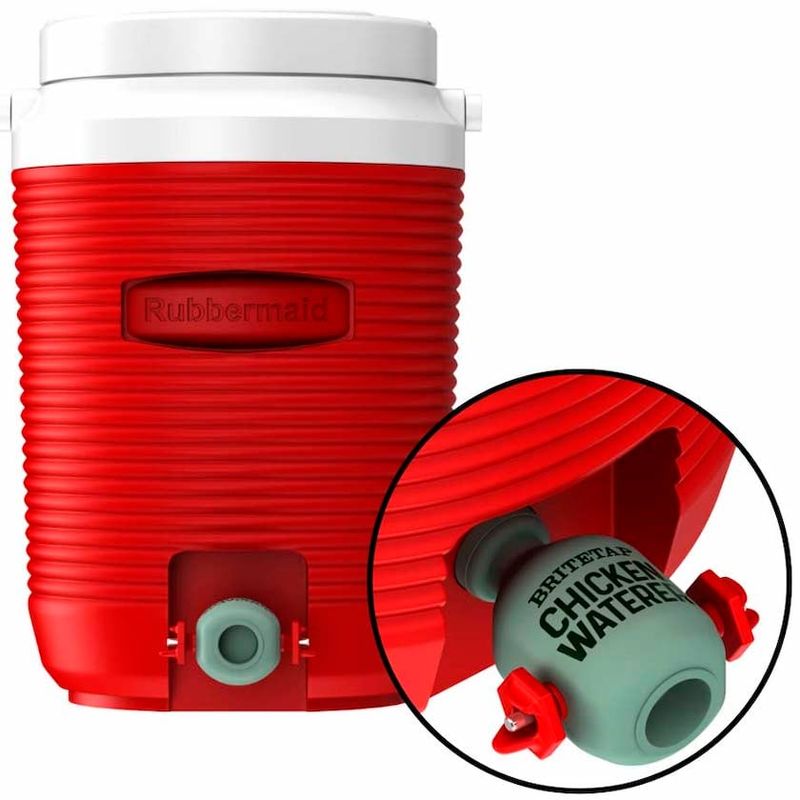 The cooler also needs to have a spout or a vent cap on top. Coolers with a solid lid will require a hole being drilled in the lid. You can also add the BriteTap Chicken Waterer to a bucket or container that you will have to drill a hole in the side for the chicken waterer to be installed and a vent hole in the lid.