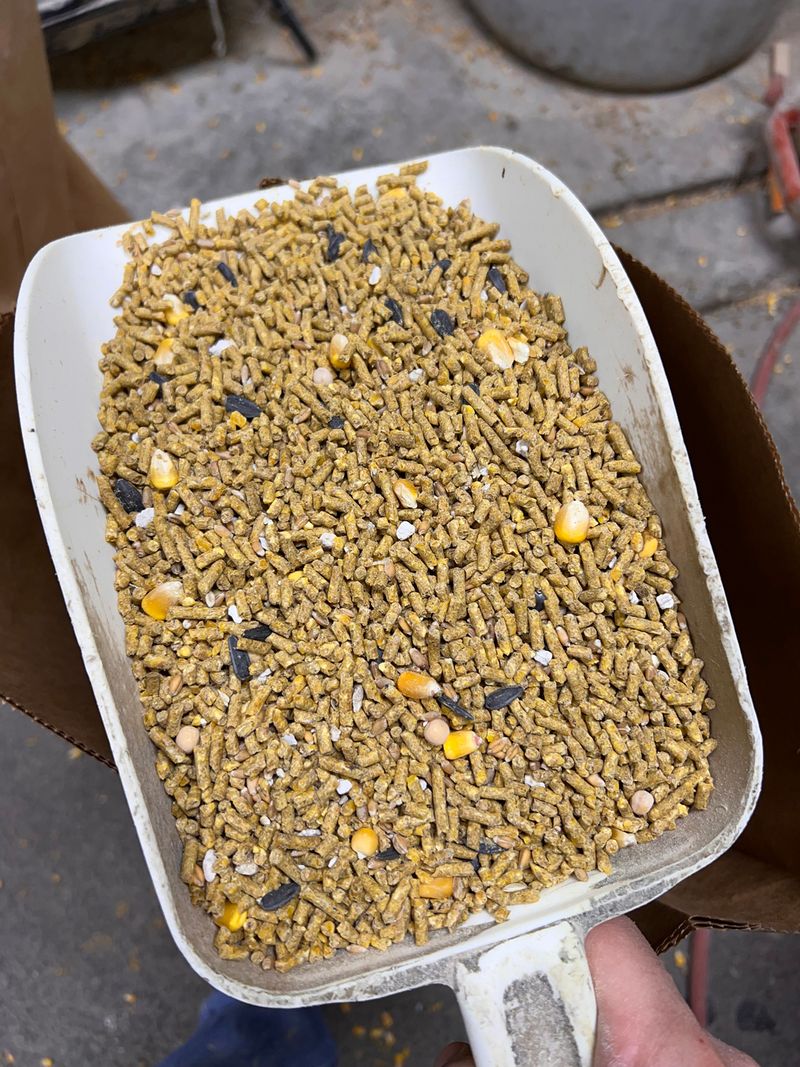 scientists and nutritionists worldwide. To harness the benefits of whole grain feeding, the ratio of grains to pellets needs to be inverted, contrary to the prevalent approach found in most scratch grain products.
