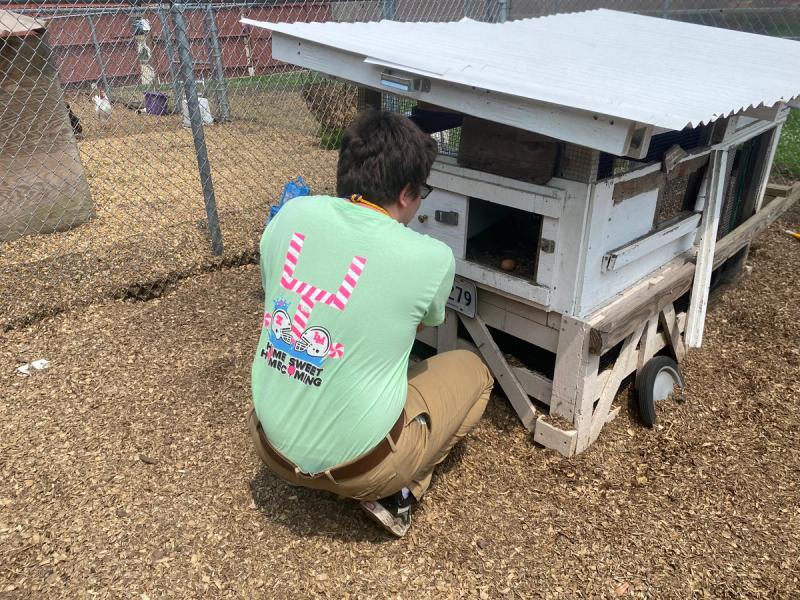 Fritz said that he was taught to handle the chickens and eggs properly. His advice for other students? “They should take time to learn about the different types of chickens and be interested in them. And always be willing to ask questions.” His favorite chicken, Nightshade, is a black Australorp.
