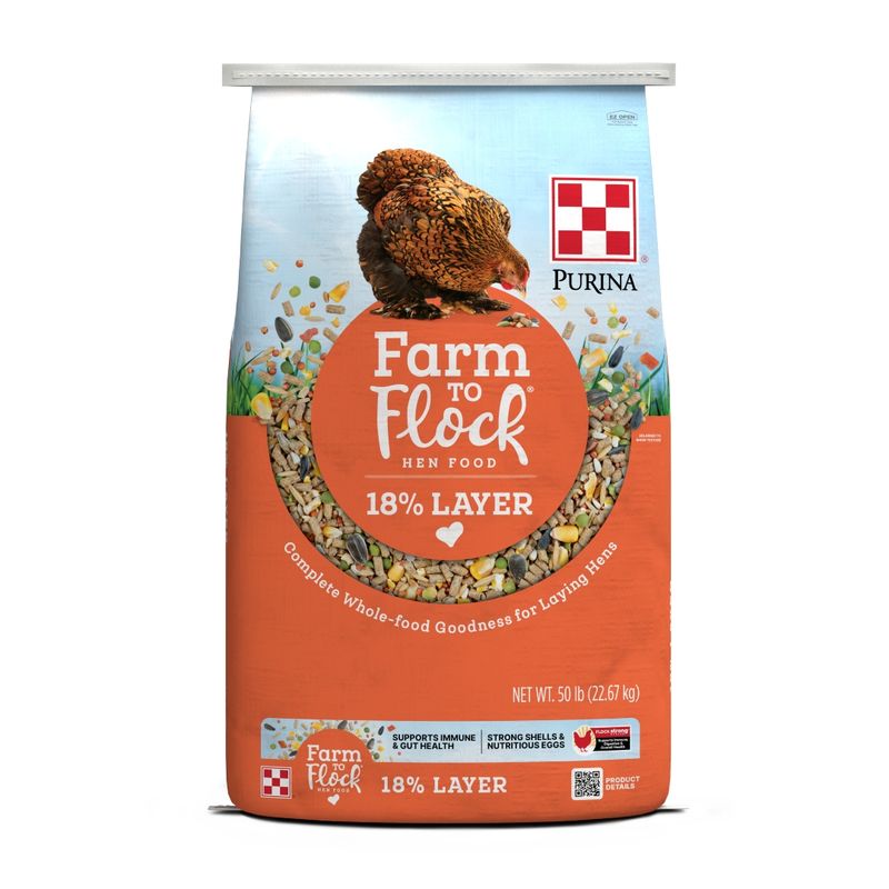 Designed with visible, wholesome ingredients, Farm to Flock 18% Layer Feed delivers complete nutrition for your hens — no added supplements required. Each scoop features a purposeful blend of high-protein pellets, ancient grains, seeds and veggies to keep your flock happy and healthy.