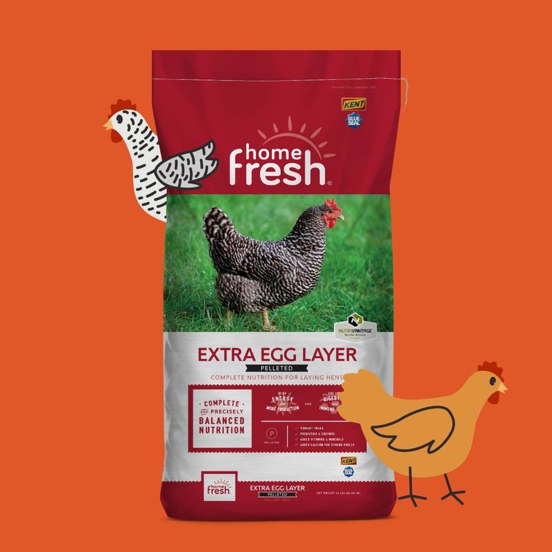 Home Fresh Extra Egg Layer helps boost egg production in laying hens 20-plus weeks old. With a balanced 17% protein blend to support growth and reproduction and Yolk Rich technology for deep, vibrant yolks, this feed is formulated for both results and taste.