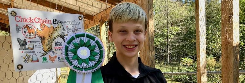 Phoenix had been a 4-H Chick Chain Project participant last year and his chickens were laying well. Because Phoenix won, that meant his 4-H agent, Michael Dillon, received a sign for the county extension office as well as a candler to help with training future Chick Chain Project participants.