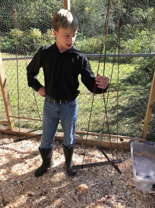 One special feature of Phoenix’s coop is a unique hanging addition. Phoenix watched his chickens’ behavior and saw that they needed a little something extra meet their activity needs. He added swings!