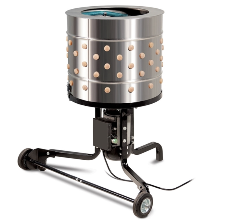 My husband was impressed with the weight and size of the motor. It took us 15 to 20 minutes to put the Yardbird Chicken Plucker together. I really like the solid rubber tires on it, that made it so easy to move around. The stainless steel construction of the tub was very impressive also.
